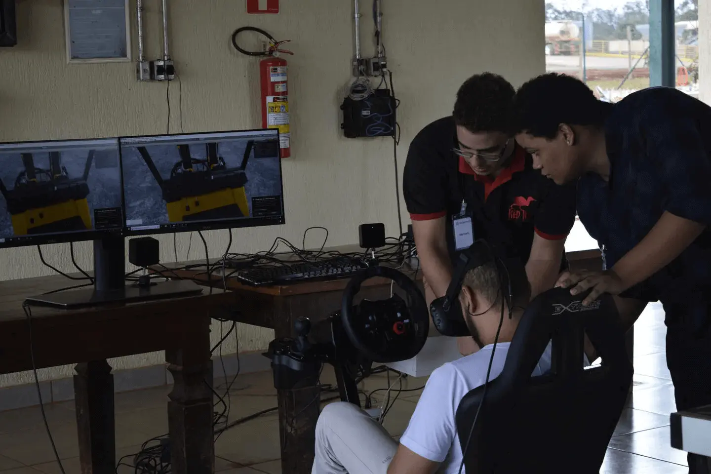 Treinamento industrial de alta precisão. Utiliza hardware Logitech G29 e sensores Arduino para replicar a física real de operação em armazéns logísticos.