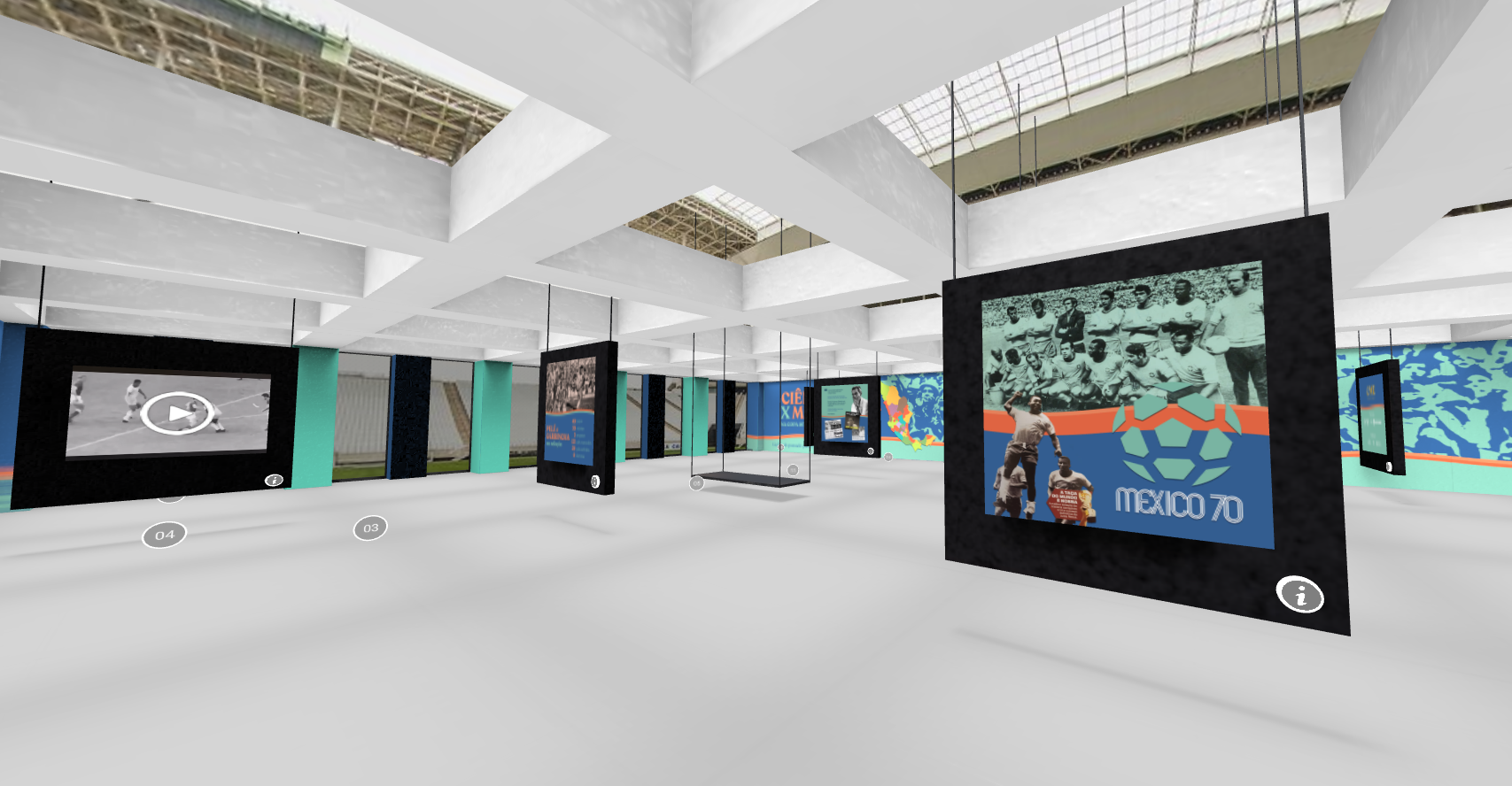 Desenvolvimento WebXR com ambientes 3D imersivos, UI interativa, fluxo de navegação, texturização e integração de conteúdos multimídia.